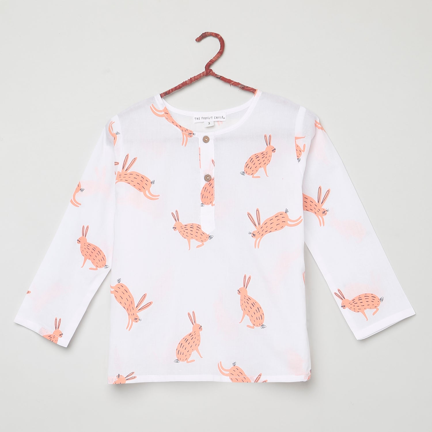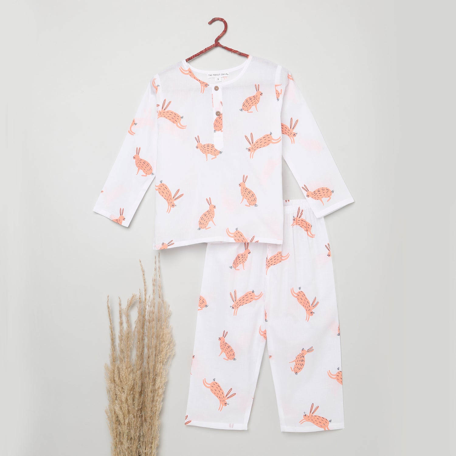 Hare print cotton pyjama set for toddlers & kids in Mauritius. Soft, gender-neutral sleepwear for ages 1-6.