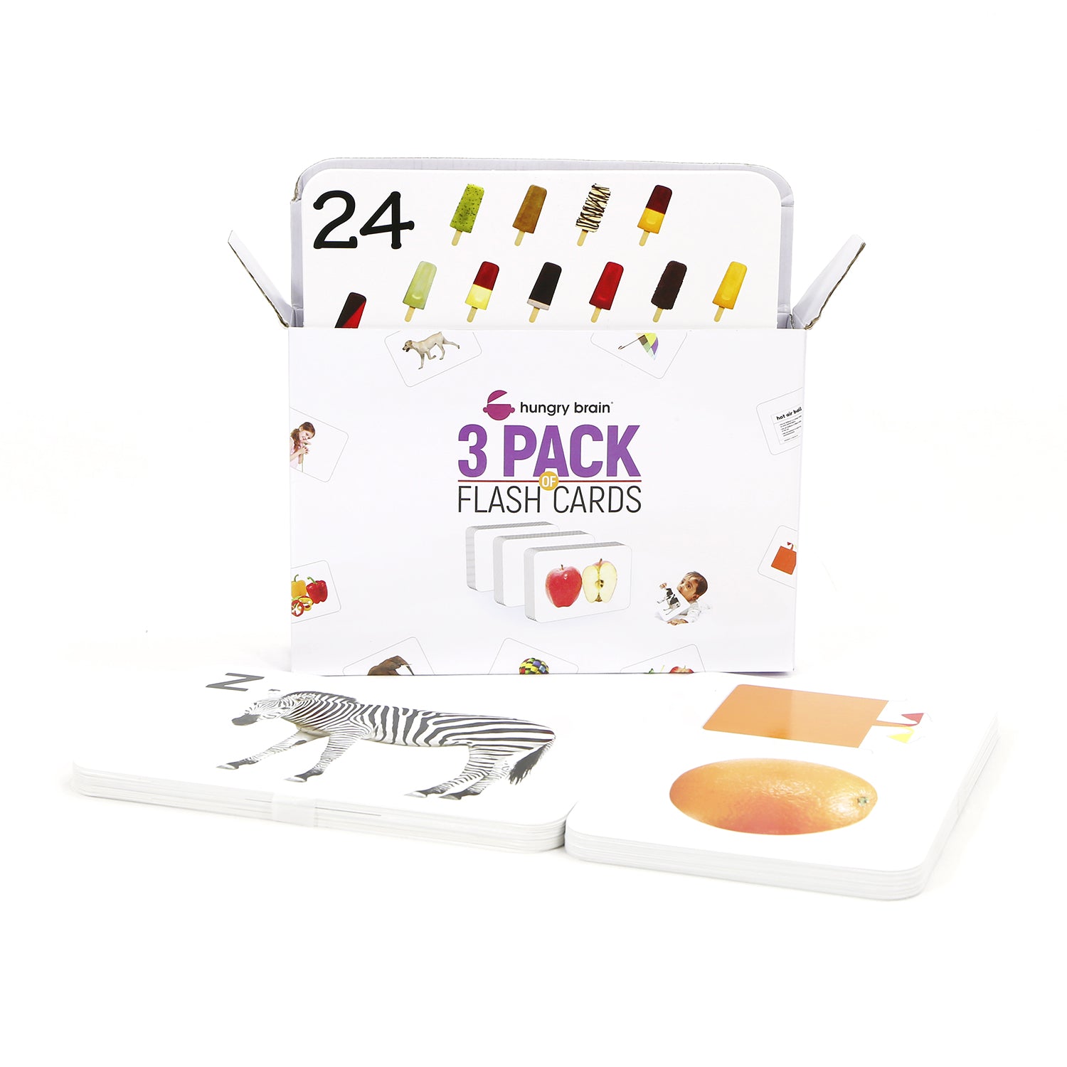 Versatile pack of 3 flash cards featuring numbers, letters, and shapes, designed to promote interactive learning, memory retention, and skill development in an engaging and portable format.