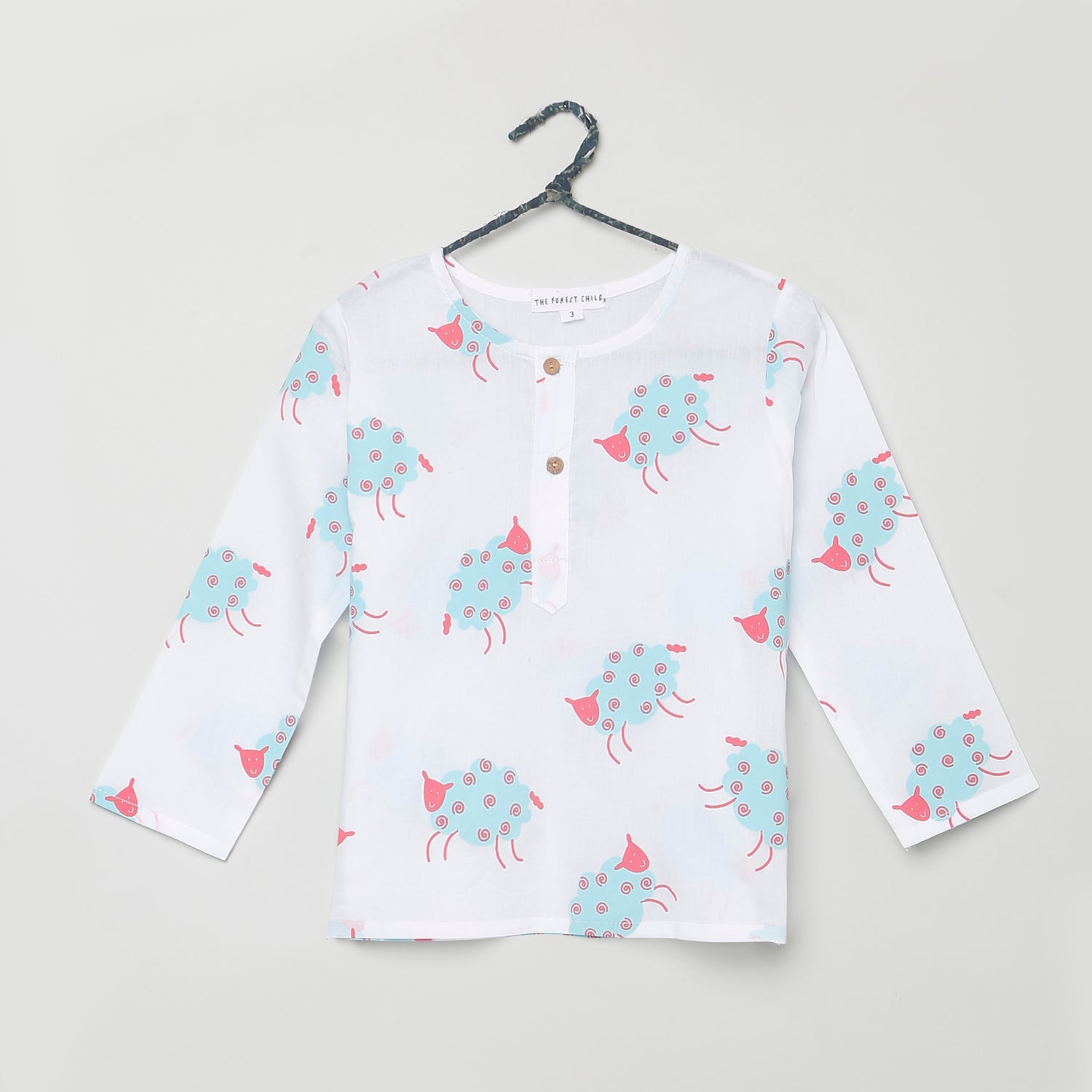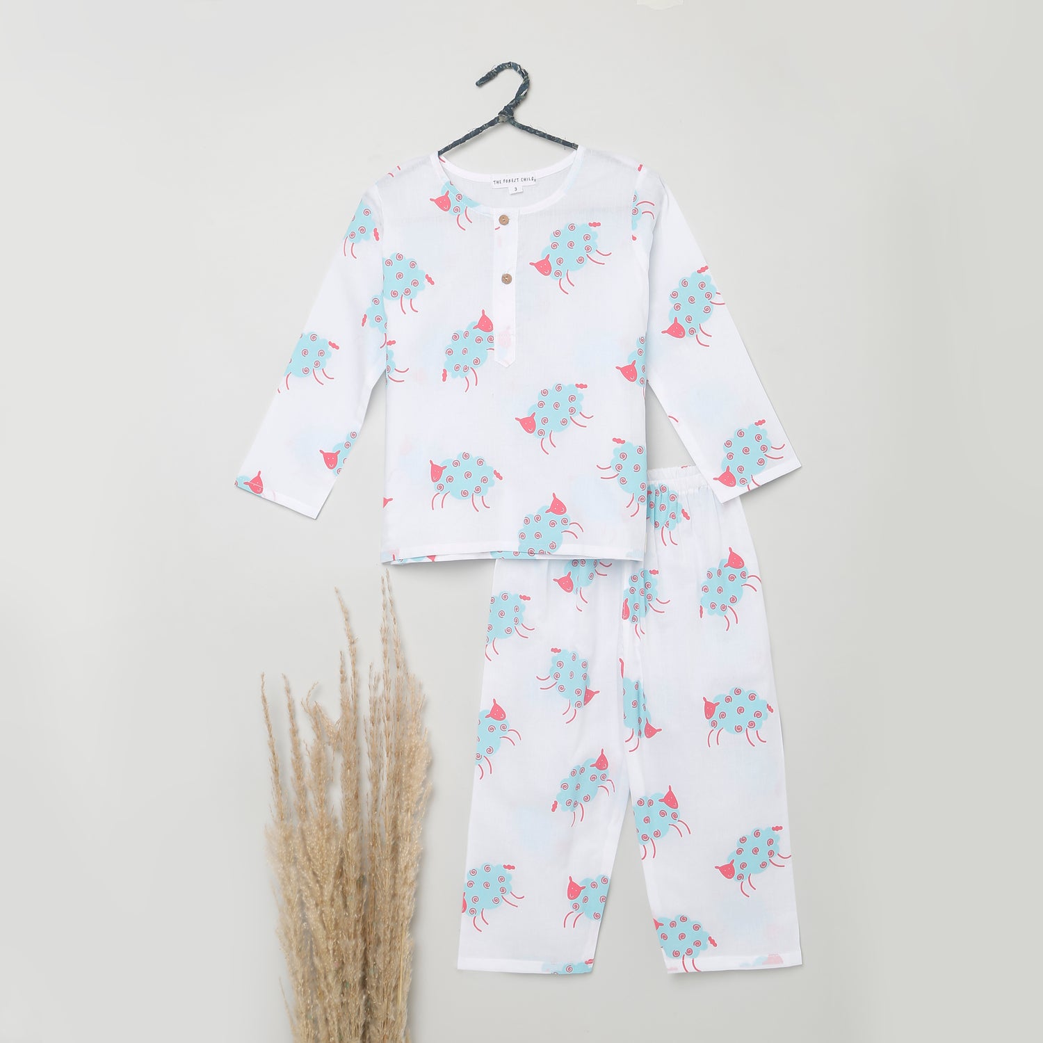 Shop sheep print cotton pyjama sets for kids in Mauritius. Comfortable nightwear for ages 1-6.