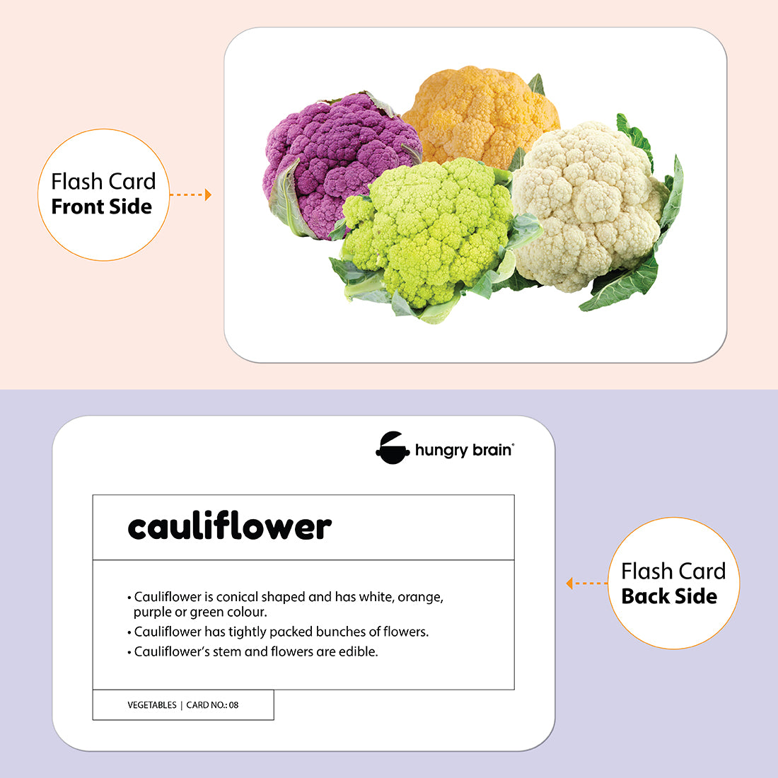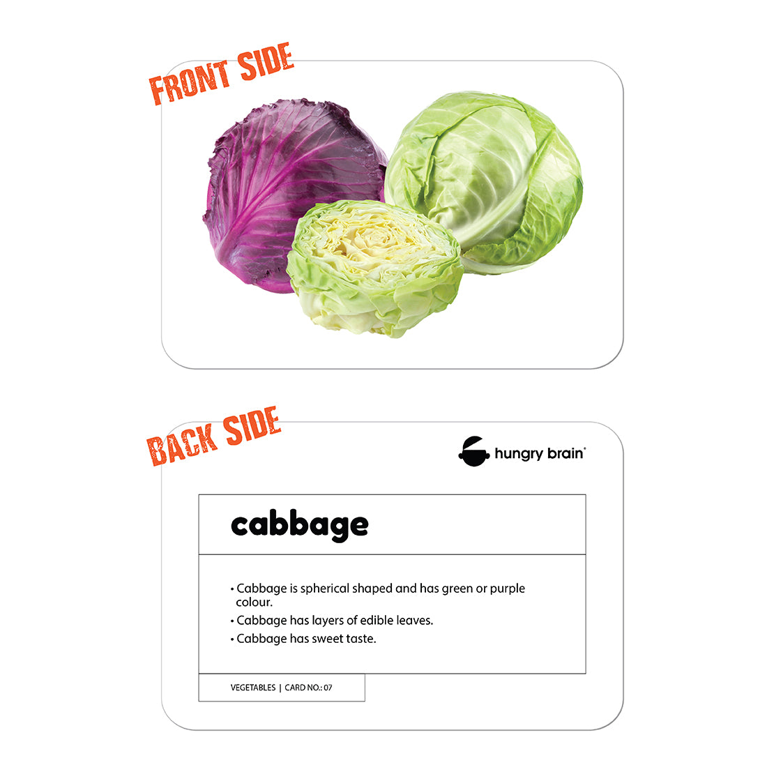 Teach your child about vegetables with flash cards that show exactly what they see in real life.